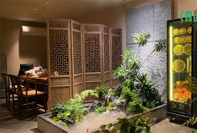 綠化種植:在假山周圍和流水兩側(cè)種植綠植,注意植物的搭配和布局,使其與假山和流水相得益彰。